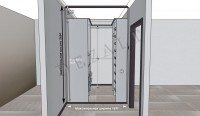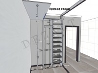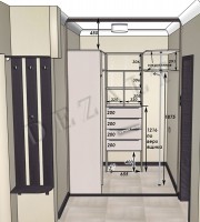 Сначала мы хотели оставить для прохода всю левую сторону. Но клиент посчитал что места для входа ему достаточно и нужно левую стену обустроить полками для вещей. Пусть они будут неглубокие, но все же что-то положить получится. Мы предупредили, что ящики, при выдвижении, не позволят стоять перед ними, нужно сместиться в сторону. Заказчик с этим согласился.