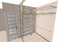 Чтобы не загромождать вход в гардеробную, справой стороны, мы поставили подпор в виде штанги чуть дальше от прохода.