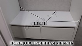 Процесс монтажа псевдовстроенного шкафа короток, как и его жизнь. Не нужно ничего подрезать в ЛДСП, точить, сверлить бетонные стены, шуметь, пылить. Как говорится – «Тяп ляп, все готово!».