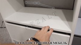 Существует псевдовстроенная мебель, ненастоящая, это когда собирается каркас и задвигается в нишу целиком, либо частями. Полки и стойки не подтачиваются под форму ваших стен. Корпуса закрепляются в нескольких местах к стенам, как правило в верхних точках, чтобы предотвратить опрокидывание на человека.