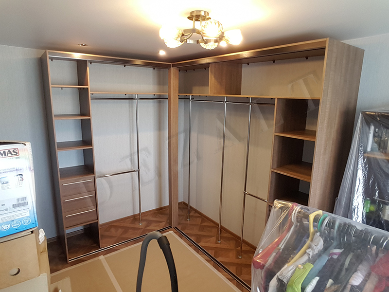 Угловой шкаф-купе с открытым углом внутри