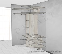 1. Если вы располагаете помещением 200см. на 120см., а входом будут служить двери-купе, посмотрите первый вариант на чертежах и на видео. Идея была сделать упор на штангах для одежды.