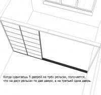 Получается, что если у вас будет 5 дверей-купе и двойной рельс, то вы получите проход размером в полтора метра. Вы должны это понимать.