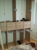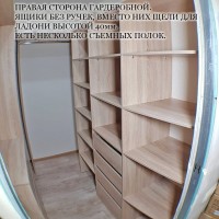 Ну и конечно рекомендую выбрать светлое ЛДСП для наполнения гардеробной, чтоб было светлей в помещении. Иначе темное ЛДСП будет скрадывать свет и на его фоне плохо различимы контуры вещей.