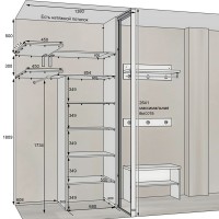 Во всех случаях, если есть возможность, стараются сделать сплошные антресольные полки вверху. Очень удобно хранить крупногабаритные предметы которыми пользуются редко.