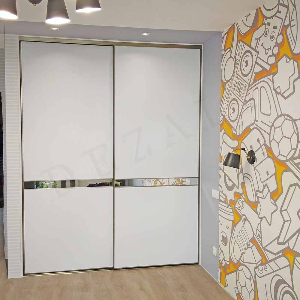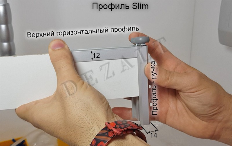 Его особенность в том, что дверь-купе с этим профилем выглядит воздушней. Вертикальная ручка шириной всего 13мм., нижняя горизонтальная планка шириной 12мм.