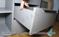 Подумайте и примерно посчитайте сколько раз вы открываете ящики в шкафу и ящики на кухне? Думаю ответ очевиден, кухней пользуются все члены семьи и не по одному разу в день. В шкаф же вы можете залезть 2-3 раза в день, больше вряд ли… Ну и зачем там дорогая фурнитура «Блюм»? Конечно, если есть лишние деньги и желание жить с повышенным комфортом, то ставьте «Блюм». Такие ящики будут работать тише, выдвигаться и задвигаться мягче и у них, как правило, стоит система доводки. Механизмы у «Блюма» будут скрытые, невидимые для глаз. Дно у таких ящиков мы делаем только из ЛДСП 16мм.