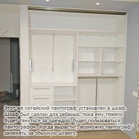 Иногда требуется поставить в шкаф пантограф, это такой лифт для одежды. Вот с ними мы поступаем по разному, обсуждаем с клиентом. Есть безымянные китайские, ими многие торгуют, стоят они от 4000руб. и выше. И есть различные турецкие, итальянские и немецкие пантографы, они уже стартуют от 8 тысяч. Срок службы примерно пропорционален цене.