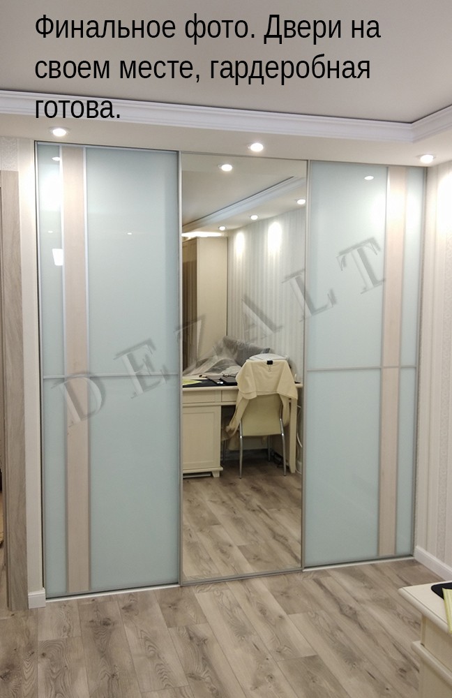 Дальше мы рисуем в специальной программе конструкцию шкафа и высылаем вам с ценой, так же на почту или на электронный мессенджер. Стоимость мы обычно разбиваем на две суммы, одна это цена за корпус с работой, вторая это изготовление и установка дверей-купе.