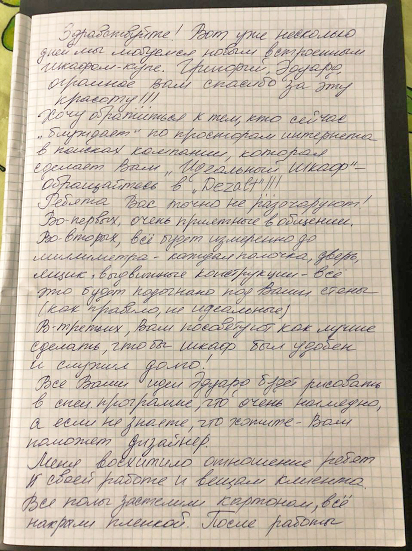 Будет замечательно, если вы еще и фотографию пришлете, где будет стоять шкаф.