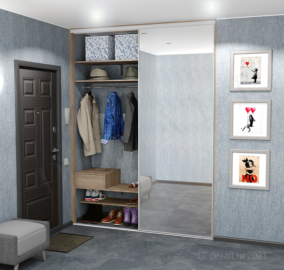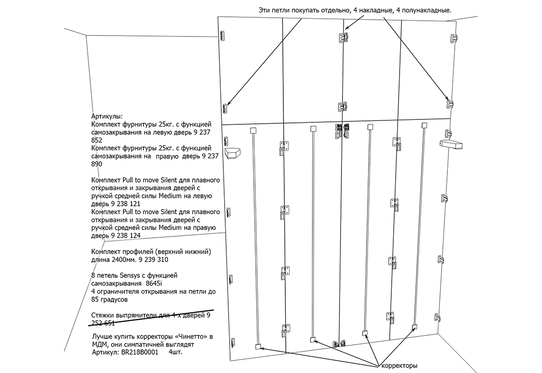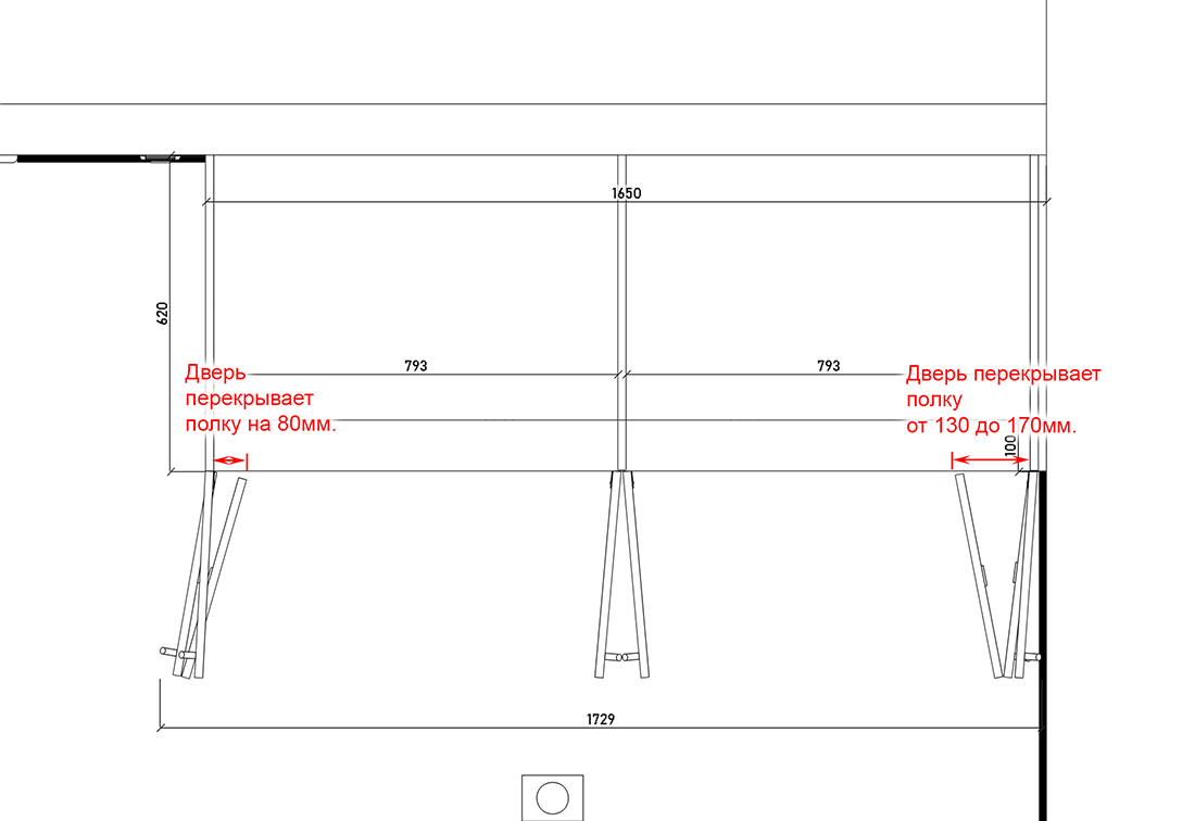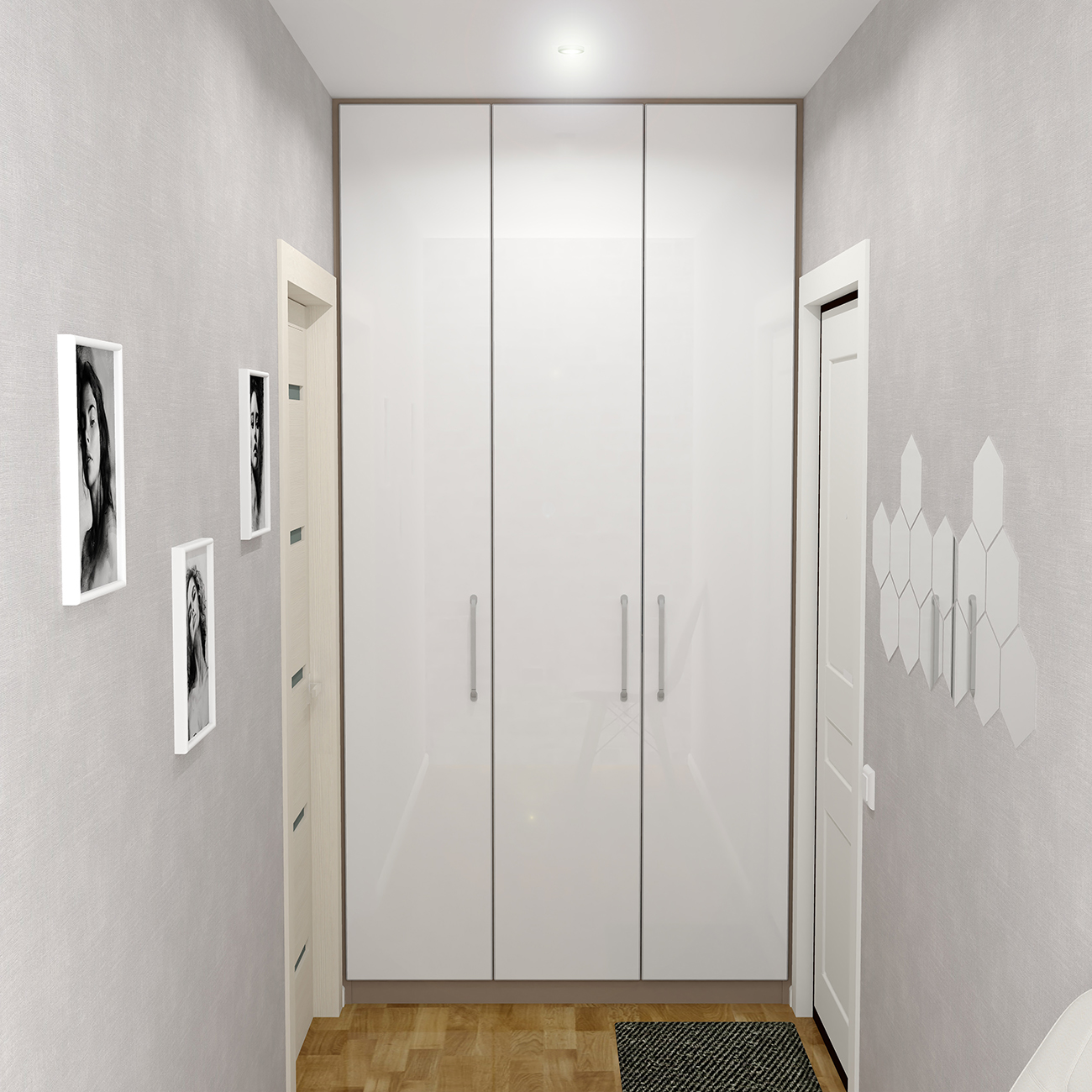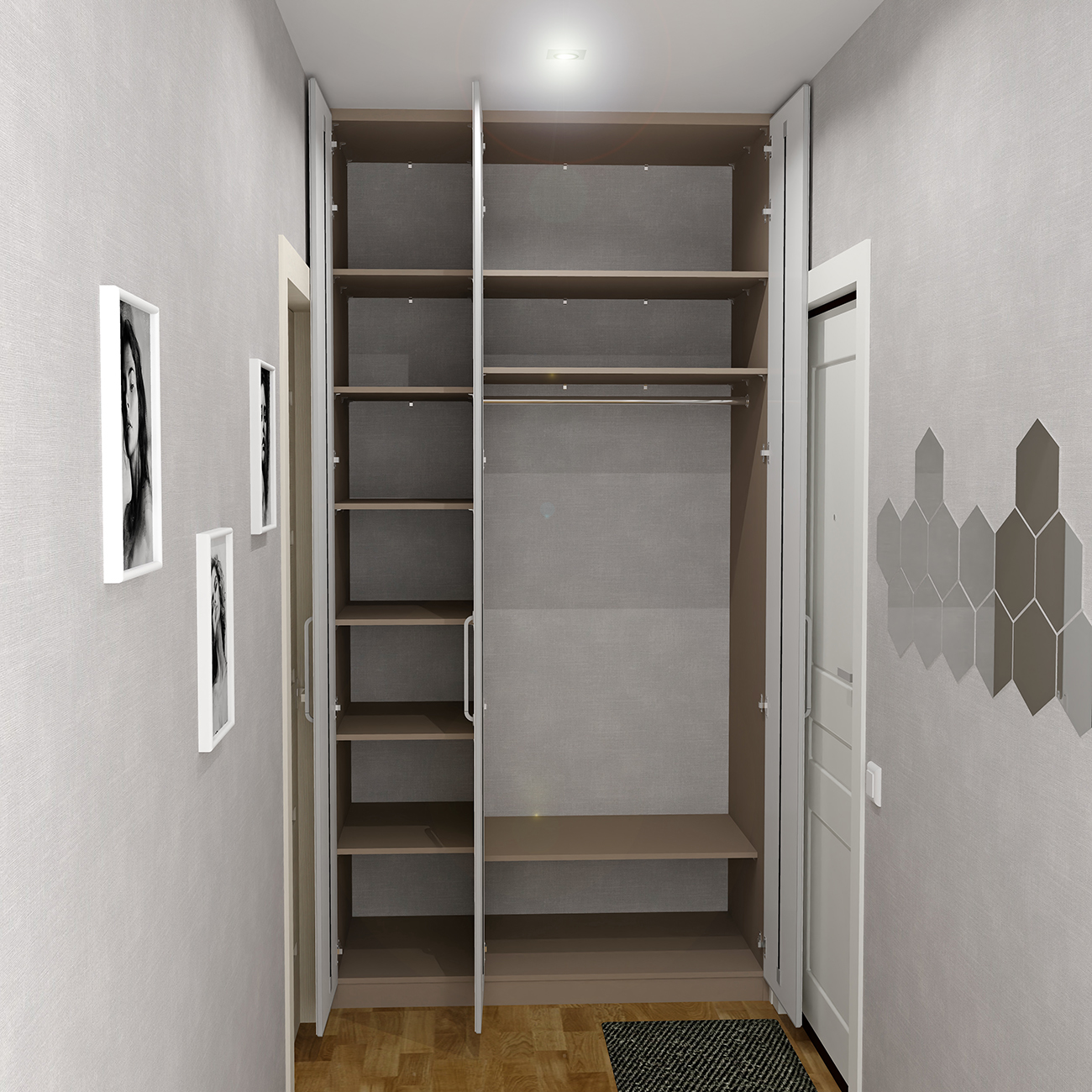 Второй важный момент – данная мебель не лучший вариант для установки в маленькую прихожую или в нишу. При открывании створок они будут ручками упираться в боковые стенки. Решить вопрос можно с помощью установки ограничителей, которые не дадут фасадам полностью раскрыться, но это не очень практично.