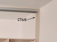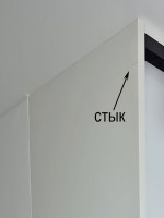 - если потолок выше 2800мм, на стандартное ЛДСП наращивается длина до необходимого значения с помощью шкантов и клея. Большое полотно склеивается с маленьким до нужной длины. После высыхания клея на полученное полотно наклеивается целиковая кромка (чтоб закрыть место соединения). Такой вариант лучше применять на однотонных плитах, так как в случае с деревянными не совпадает рисунок. Однако, этот способ вполне рабочий, так как позволяет получить большую плиту, место соединения которой с наращённым куском не всегда «бросается в глаза».