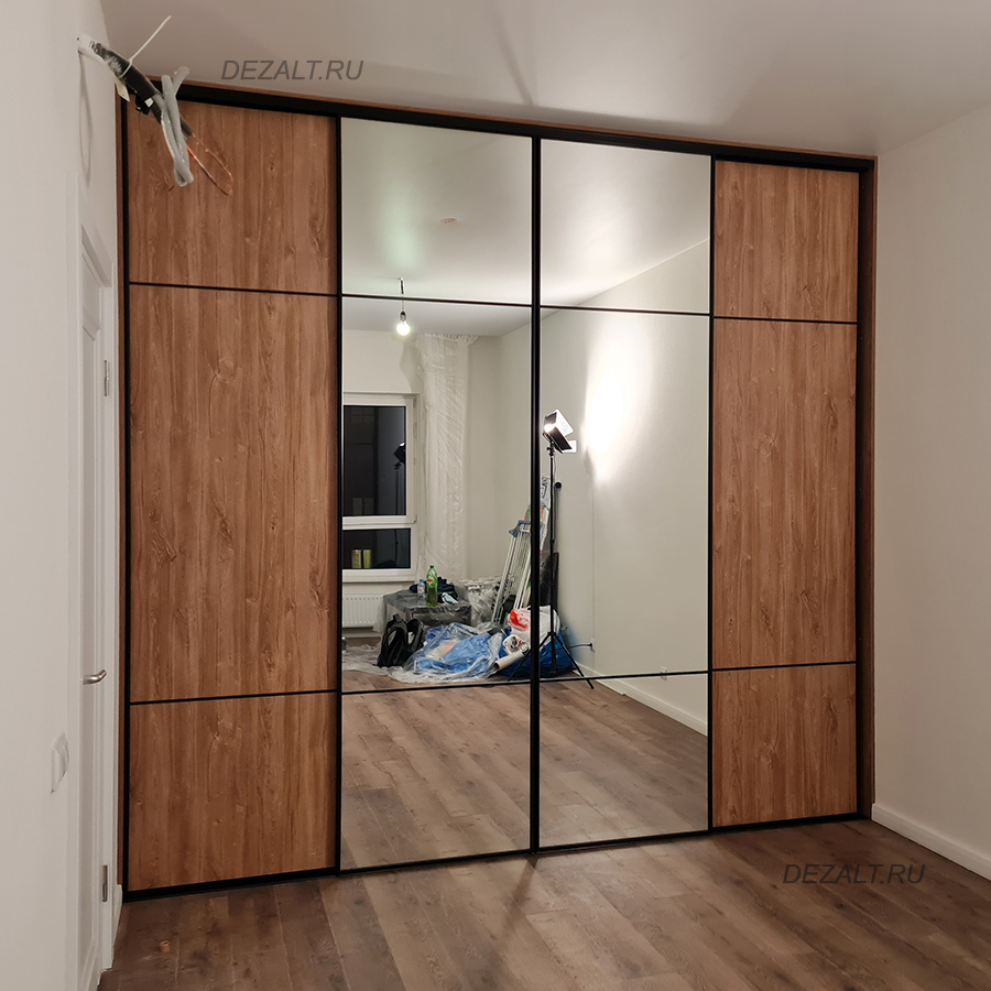 Можно усилить эффект, как в этом примере. Вставки в дверях из приглушенного стекла и если оставить свет внутри шкафа включенным, фасад будет светиться.