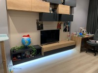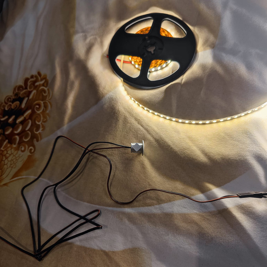 Одна лента включается от общего освещения и служит как функциональная подсветка. Вторая лента включается сенсорной кнопкой и выполняет роль декоративного света, чтобы было уютно вечером.
