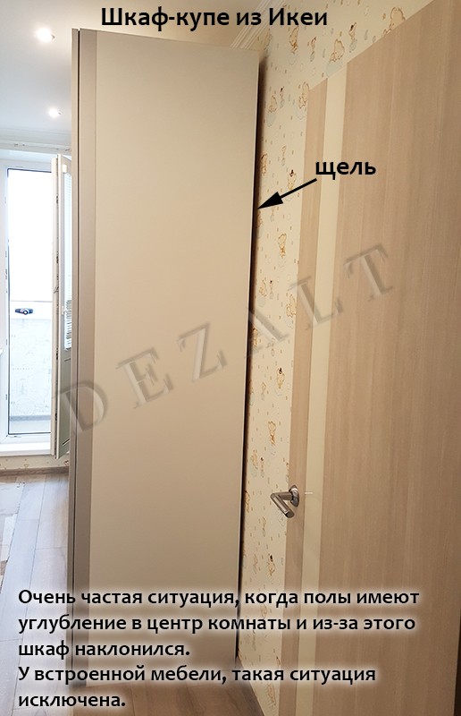 1.Видны щели между стенами и шкафом, а так же потолком и полом.