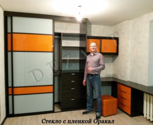 Если наклеить белую пленку оракал на стекло, получается матовый эффект. Будьте осторожны, потому что полупрозрачность может выйти вам боком, будет видно содержимое шкафа-купе.