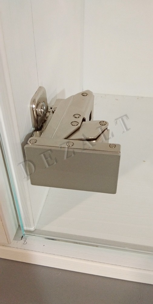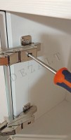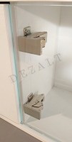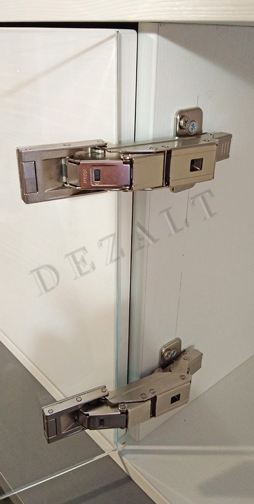 Дверки у нас накладного типа. Петли у нас были фирмы «Блюм», продавец дал инструкцию на какое расстояние приклеивать металлические площадки на стекло. Затем уже к этим площадкам прищелкивают сами петли.