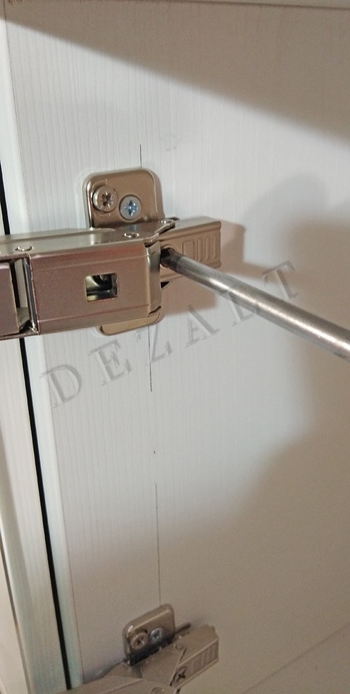 Петли регулируются точно также как и все остальные подобные, дальний винт отвечает за глубину фасада, а ближний за наклон. Конкретно у этой петли еще есть винт который отвечает на подъем и опускание всей двери.
