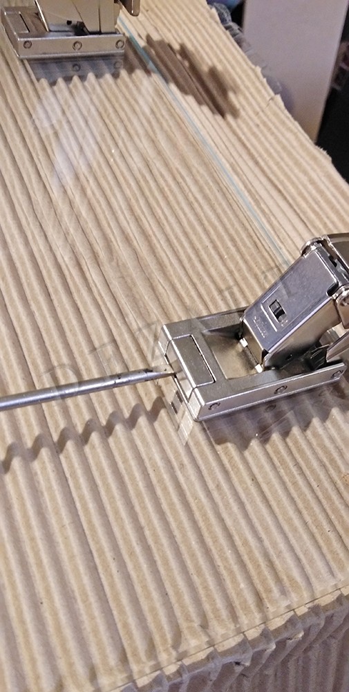 Ну естественно, если вы собираетесь такими вещами заниматься постоянно, вам нужен шаблон. Но так-как мы делаем в основном шкафы-купе и гардеробные, мы понимали, что клеим петли на стекло в первый и возможно в последний раз.