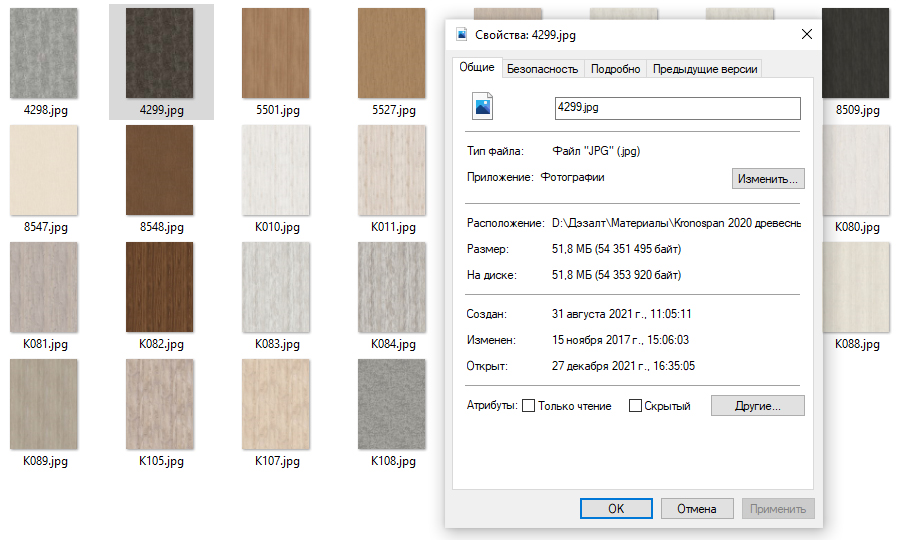 Размер zip папки с древесными декорами «Кроношпан» - 3,80Гб.