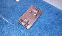 После этого, нужно сразу аккуратно вычищать излишки клея по периметру площадки. Я приспособился это делать зубочисткой. Затем нужно взять тряпочку и с растворителем 646 отмыть слегка затвердевший клей. Знайте, что площадка еще полностью не приклеена, она держится на честном слове, все нужно делать аккуратно.