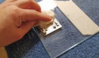 Ну и еще один момент. Надеюсь вы догадываетесь что клей затвердевает от попадания на него ультрафиолетовых лучей. Поэтому светить нужно со стороны стекла, а не со стороны площадки.