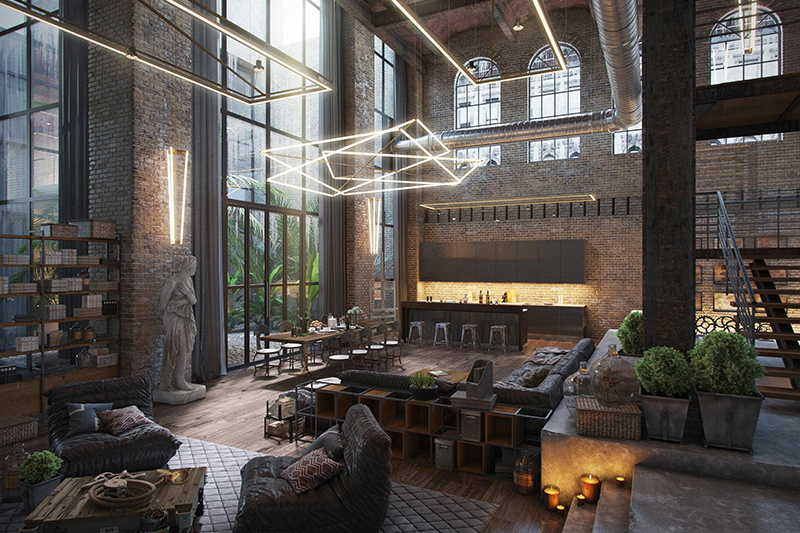 Настоящий Лофт подразумевает под собой большие пространства, настоящие металлические конструкции с грубыми сварочными швами и натуральной ржавчиной. Это грубые доски, кирпичные стены без штукатурки, бетон и камень.