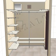 Место конечно очень мало, мы попробовали обойтись без стоек из ЛДСП которые бы перегораживали подход к полкам. Заказчик отказался от выдвижных ящиков, потому что планирует расположить верхнюю одежду на плечиках, обувь на нижних полках и хозяйственные вещи, такие как: стиральный порошок, моющие средства, коробки с лампочками и батарейками, инструменты, все то, что мы вынуждены хранить у себя дома.