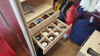Так как мебели было много и встроенная гардеробная подразумевает подгонку деталей по месту у клиента, мы около пяти дней ездили на монтаж.