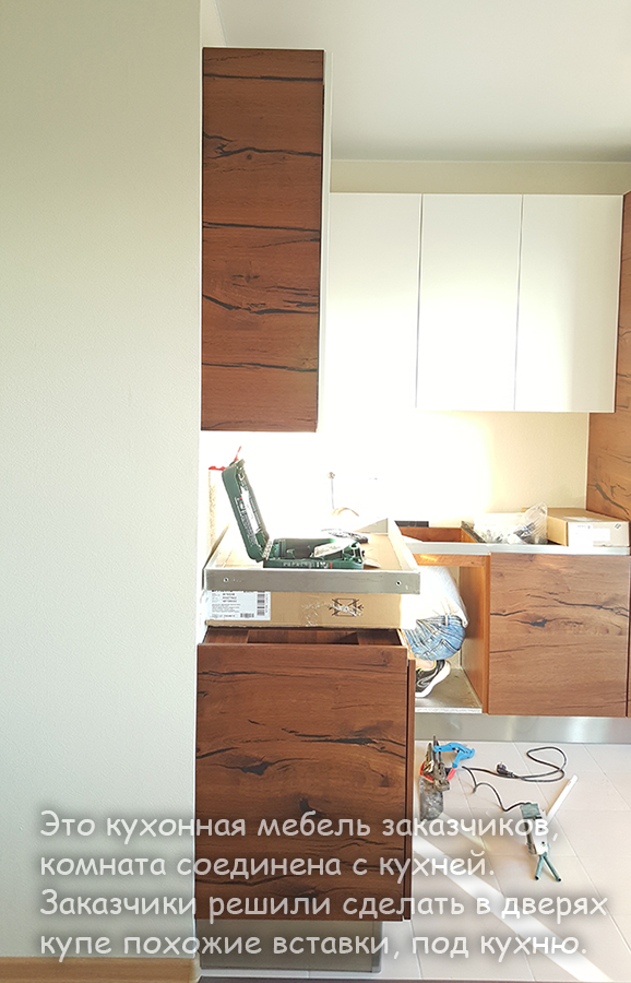 Как часто бывает, клиенты предоставили нам ключи от квартиры и мы занимались сборкой шкафа в их отсутствие.