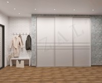 Мы записывали видео обстановки для нашего дизайнера, чтобы она, глядя на фотографии и видео, смогла предложить клиенту фасад мебели. В основном мы беспокоились о внешнем виде шкафа-купе, так как с распашным все было очень просто, нужно было выбрать только декор дверей.