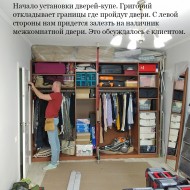 2. Если есть старые шкафы, придвиньте их к стене и закажите хорошие двери-купе, которые закроют все «безобразие». Вот по этому пути пошел наш очередной заказчик. Позже, когда появятся деньги, можно выставить двери и сделать нужное наполнение. Единственная возможная проблема, это выдвижные ящики и удобство пользования отдельными полками. Помните, что двери купе не могут испариться, они лишь сдвигаются в сторону и может получиться так, что перекроют своими границами выдвижной ящик или вход в полку. Советуем отложить на полу габариты дверей-купе и подумать, сможете ли комфортно пользоваться наполнением. Возможно нужно будет просто переставить секции местами и все.
