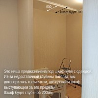 Ниша для хозяйственного шкафа имела выступ в потолке и технический люк в стене, а в нише со шкафом для одежды, был водораспределительный узел.