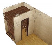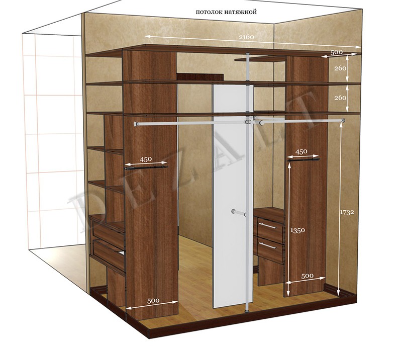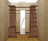 Мы изобразили гардеробную в специальной программе и показали. Заказчик попросил внести небольшие изменения и вот что у нас получилось в итоге.