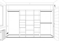 Мы получили первоначальный набросок на листке бумаги и глядя на него, обсуждая нюансы с клиентом, создали чертеж будущего шкафа на компьютере.