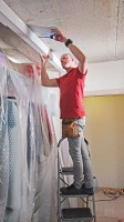 В назначенный день приступили к монтажу. Сделали короб, поставили боковые планки, чтобы двери не стерли обои, вставили двери.