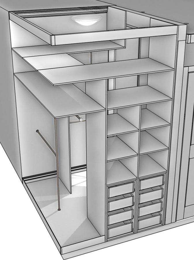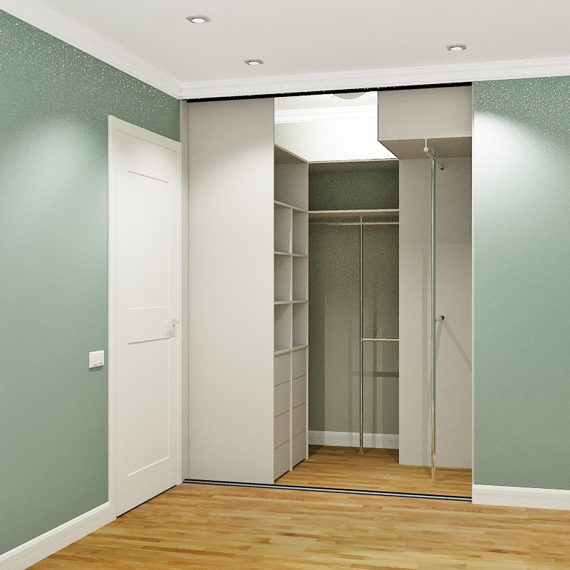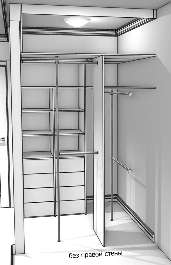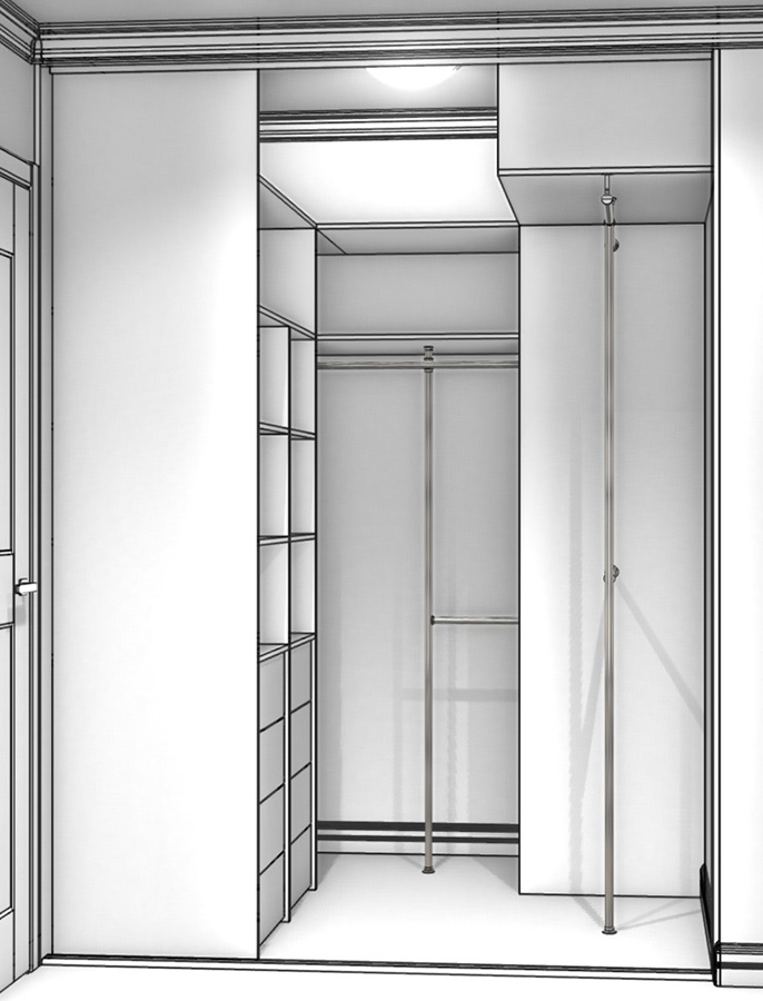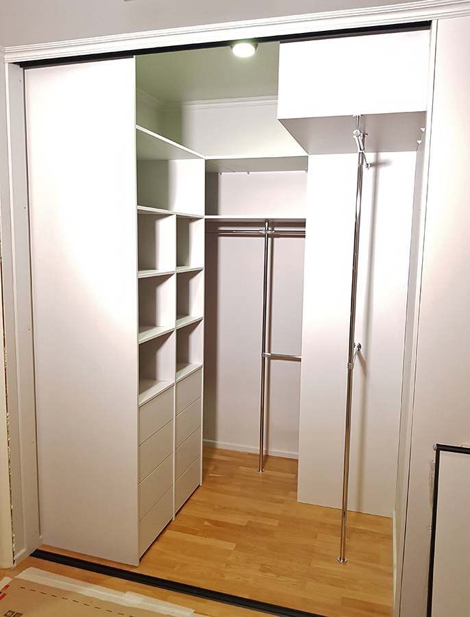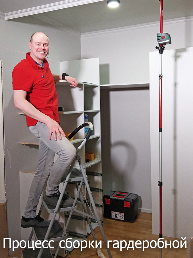 Так получилось, что он переехал в третью квартиру и снова пригласил нас, чтобы мы сделали гардеробную и распашной шкаф в прихожую. Шкаф мы покажем позже, а сейчас представляем гардеробную.