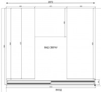 Ширина гардеробной 1872мм, значит оптимальный вариант установить две двери-купе. Одна дверь будет служить входом, а через вторую входить не получится, сразу за ней будет шкаф с вещами. Это самое рациональная планировка при таком размере гардеробной с двумя дверьми.