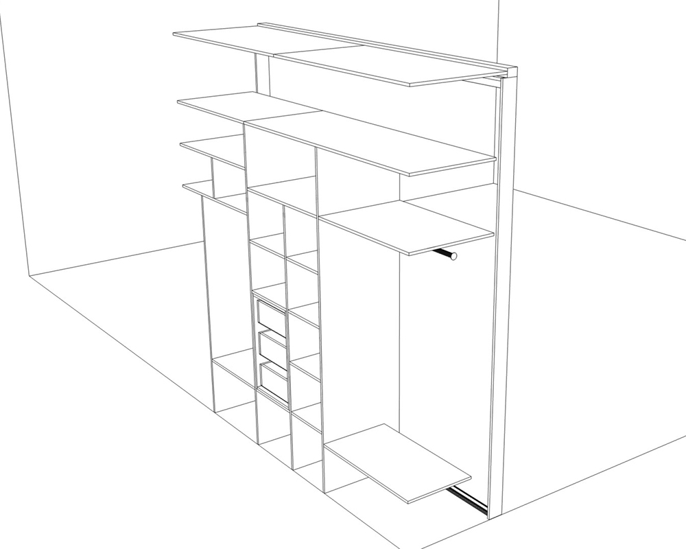 Обратился клиент из Москвы на электронную почту. Прислал план квартиры, фотографии ниши куда нужно сделать шкаф-купе, схему самого шкафа. Представился потенциальный заказчик Александром, он высказал несколько пожеланий: