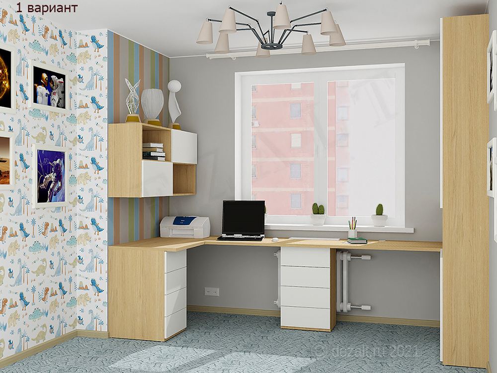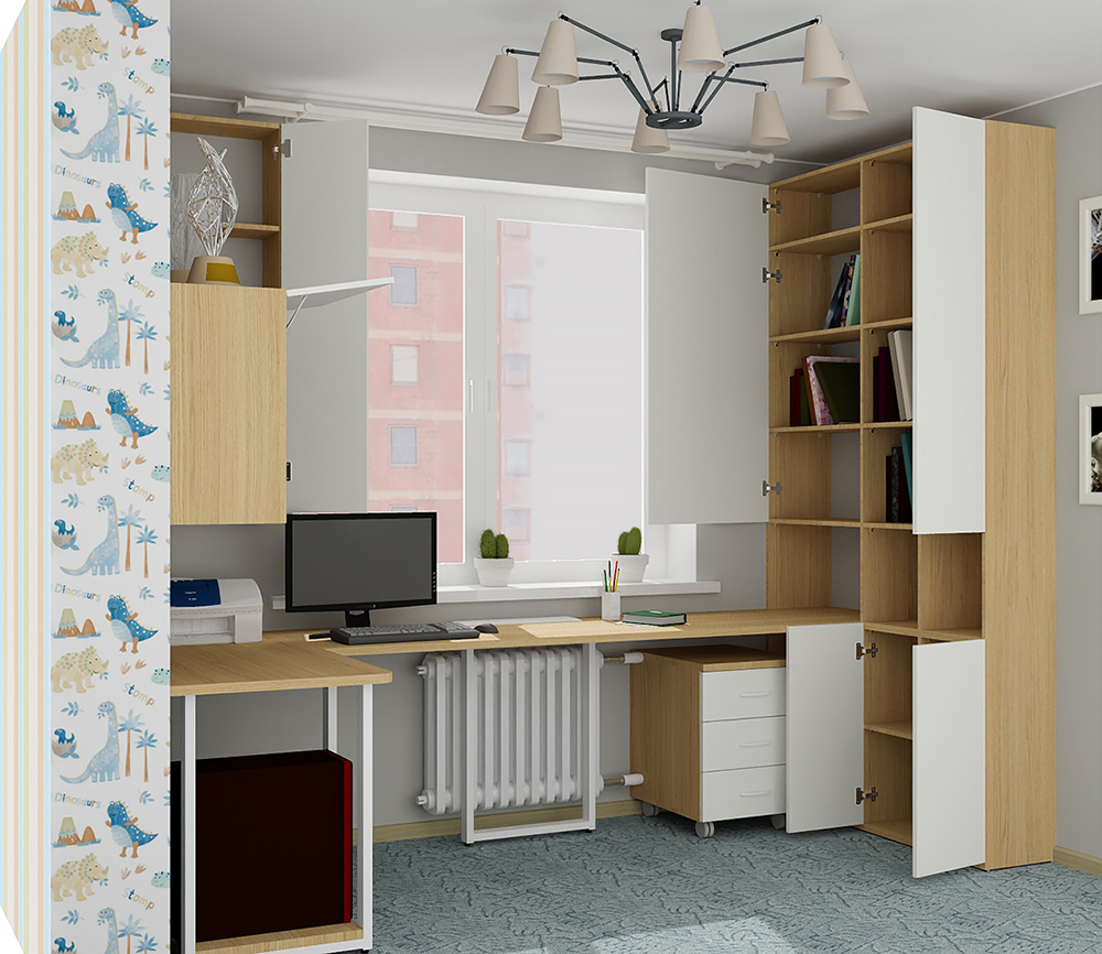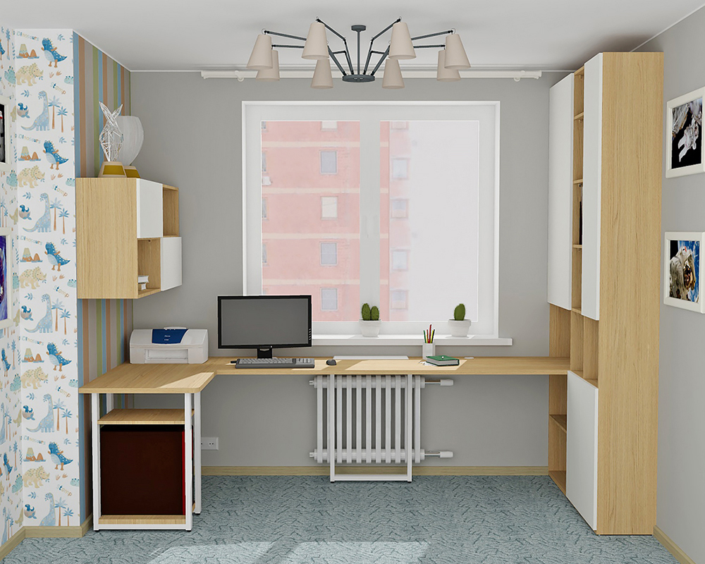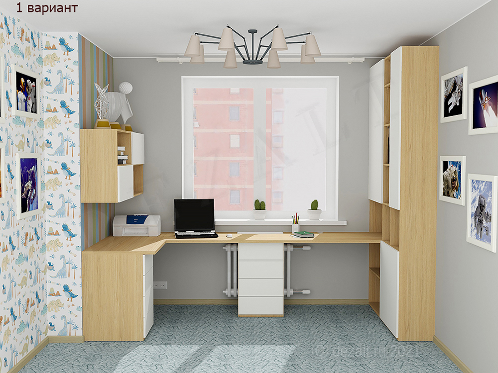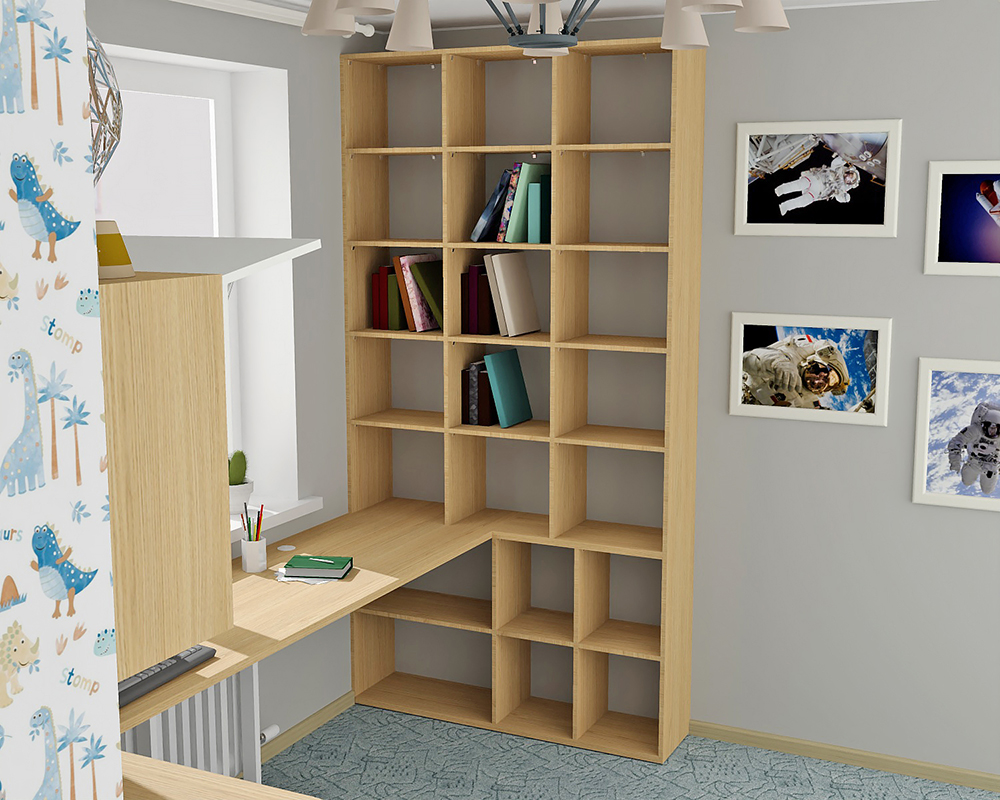 Наш постоянный клиент попросил продумать и изготовить мебель в детскую комнату. Школьнику нужен большой стол, чтобы родители могли подсаживаться к нему при необходимости и естественно нужны шкафы для хранения учебников и книг.