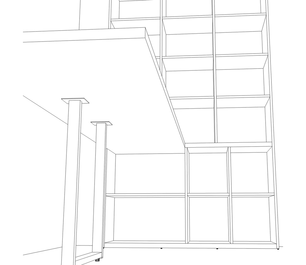 Слева над столом я изменил конструкцию шкафов для книг, сделал их более затейливыми.