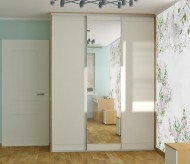 Семья осталась довольна нашей работой и чуть позже ещё к нам обратилась за мебелью. На этот раз им нужен был шкаф-купе в спальню, который собой закрыл бы проход в кладовую.