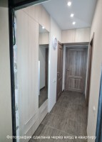 Клиент попросил наклеить на одну дверь зеркало и сделать снизу ящики для обуви. Мы предлагали сделать обе двери с зеркалами и снизу просто полочки за дверьми, так как хранить обувь в ящиках считаем непрактично в прихожей. Но заказчик настоял на своем.