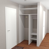 Клиент решил разместить стиральную и сушильную машину в прихожей. Для этого он заказал у нас глубокий встроенный шкаф с широкими распашными дверьми.
