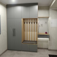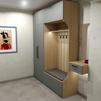 К нам обратилась семья, которая обставляла мебелью свою новую квартину в новом доме. В прихожую нужен был распашной шкаф с открытой секцией с крючками для верхней одежды.