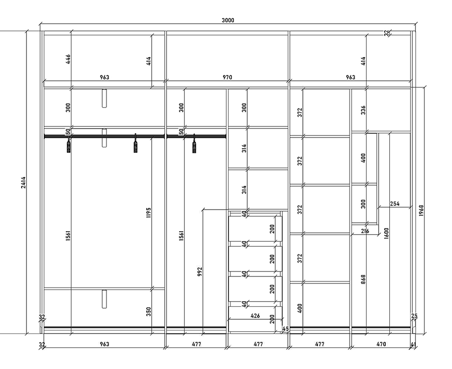Подобные технические моменты мы обсуждаем с клиентом, подсказываем, а он уже решает, что ему важней. Например от невидимых направляющих ящиков клиент отказался, немного сэкономил. Речь идет о таком моменте, что когда выдвигаешь ящик, механизмы выдвижения могут быть видны, а могут быть и невидны. Невидимые направляющие ставятся под дно ящика и стоят дороже. Видимые направляющие, крепятся на боковину ящика и работают по принципу телескопа в три колена. Еще подробней об этом, можете прочитать в нашей статье — Разница между накладными и скрытыми направляющими ящиков.