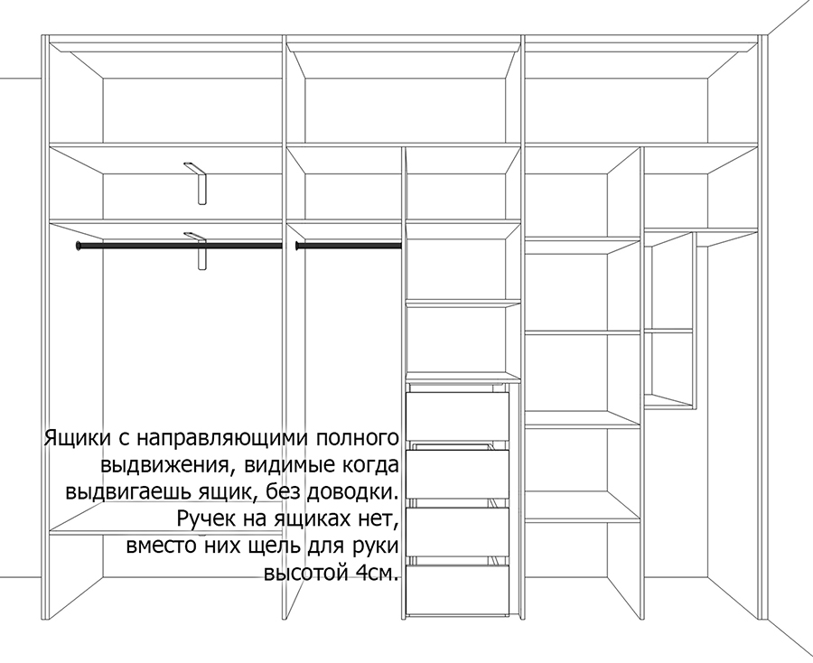 доски, а также вещи на полках. Ещё нужны были выдвижные ящики.