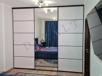 Позже, спустя несколько месяцев, нам заказали двери-купе, боковые со вставками из ЛДСП, а центральная с целиковым зеркалом.