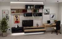 Рядом с этой мини-стенкой, спроектировали стол для подростка, который учится в школе.