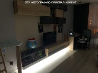 В самом низу стеллажа, Александр попросил оставить место для установки трансформатора и светодиодной ленты. В дальнейшем, он довел дело до конца, наклеил ленту и прислал нам фотографии как всё выглядит вечером.